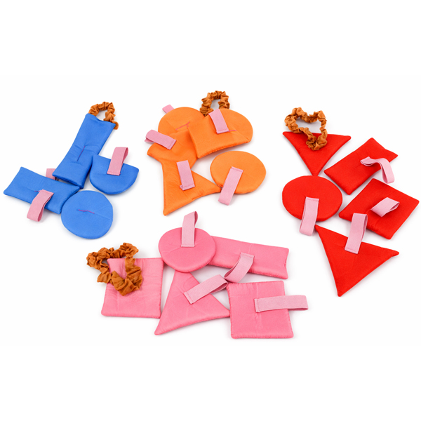 Figurkowe drużyny to znakomita pomoc, do ćwiczeń opartych o poznawanie figur geometrycznych oraz utrwalanie kolorów. Zestaw zawiera cztery opaski na głowę z figurami w różnych kolorach oraz 16 opasek na rękę. Dzieci poznają i utrwalają elementy za pomocą ciekawych i śmiesznych zabaw ruchowych, dobierania się według takich samych kolorów czy figur i wielu innych.