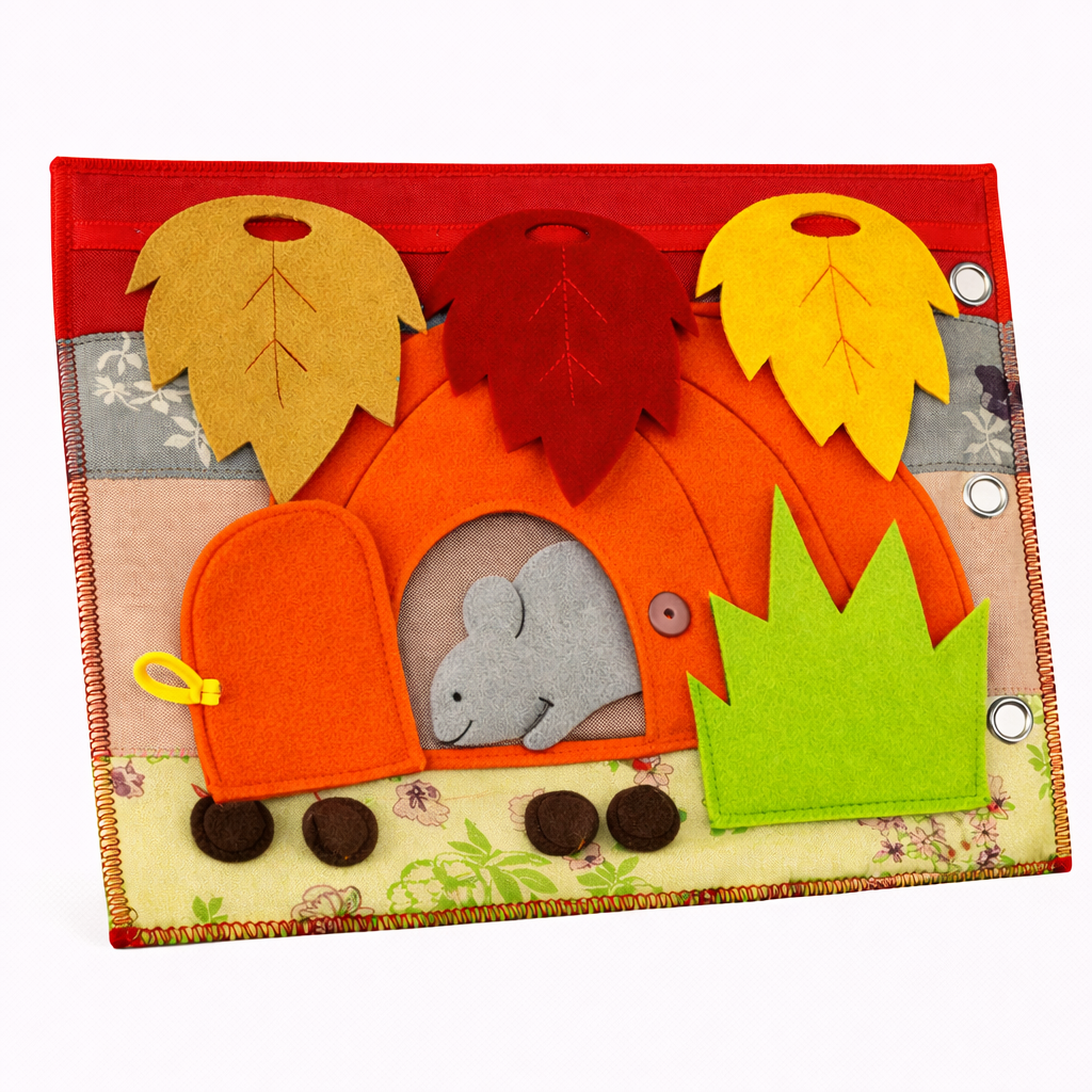 Na przykład odpinają drzwiczki znajdując za nimi sowę. Mogą aranżować spadające liście z drzew poprzez odklejanie ich z gałęzi i naklejanie pod drzewem. Dzieci rozwijają wyobraźnie, trenują motorykę małą, uczą się logicznego myślenia, rozwijają poznawczo, stymulują sensoryczne a przede wszystkim mają świetną zabawę. Książka jest kolorowa, wykonana ręcznie. Dokładamy wszelkich starań, aby elementy były trwałe.