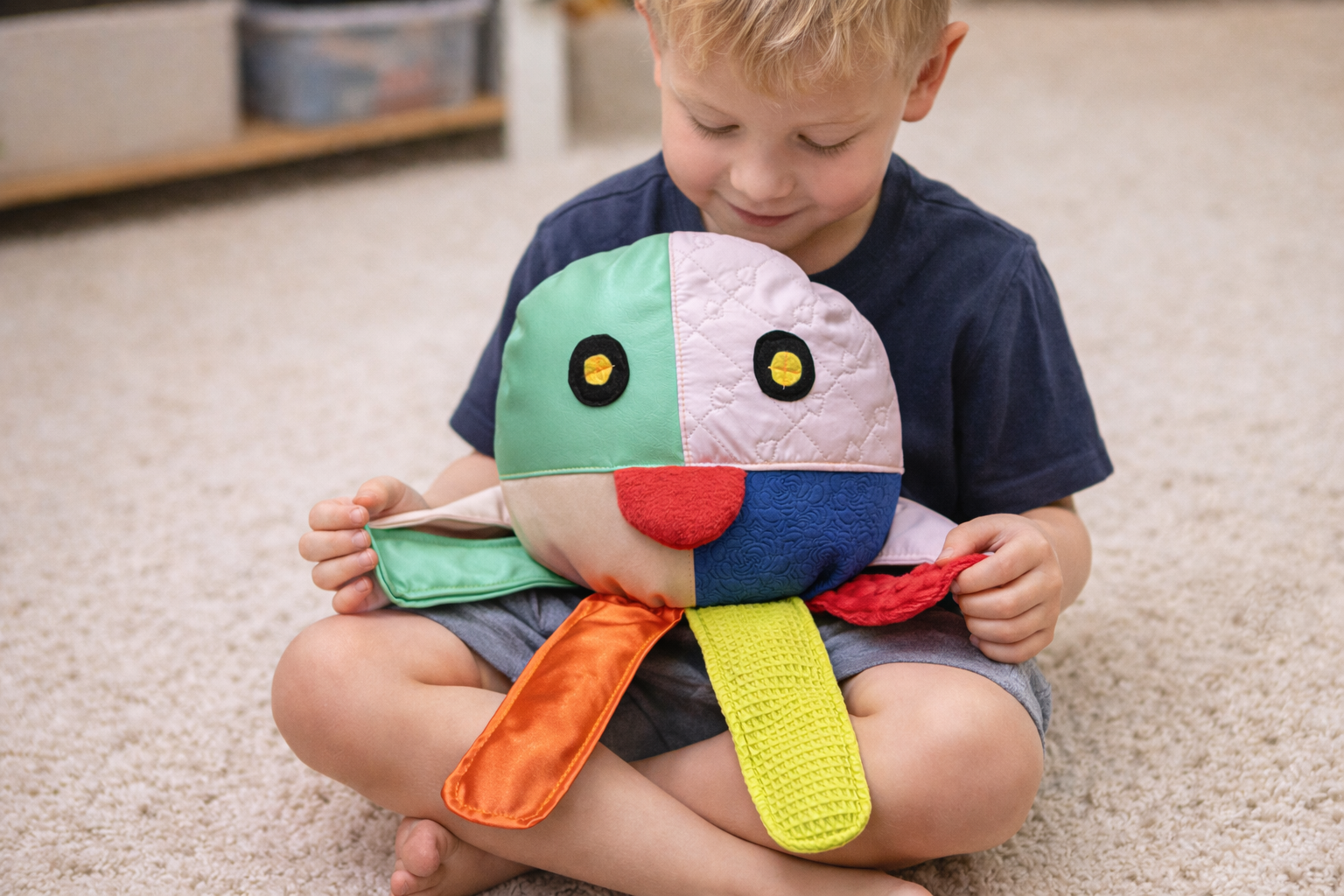 Ośmiornica obciążeniowa to wyjątkowa, ręcznie szyta przytulanka sensoryczna, stworzona z myślą o dzieciach potrzebujących bodźców dotykowych, wyciszenia i poczucia bezpieczeństwa. Wykonana z różnorodnych materiałów sensorycznych, zachęca do eksplorowania faktur i wspiera rozwój zmysłów.
